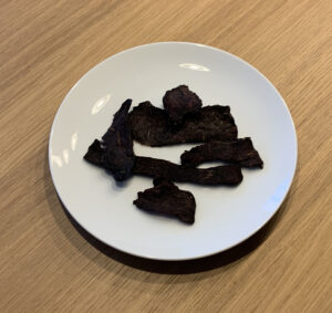 1 kg Rindfleisch ergeben etwa 300g Beef Jerky, da das Fleisch das Wasser verliert.