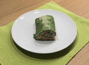 Eier, Spinat und Gewürze in einem Mixer geben und gut mixen. Masse auf ein Backblech verteilen und für 20 Minuten bei 180 Grad backen. Gebackenen Teig mit Frischkäse bestreichen, mit Käse verfeinern und mit Lachs belegen. Zu einer Rolle rollen, etwas Käse darüber und nochmals kurz in den Backofen.